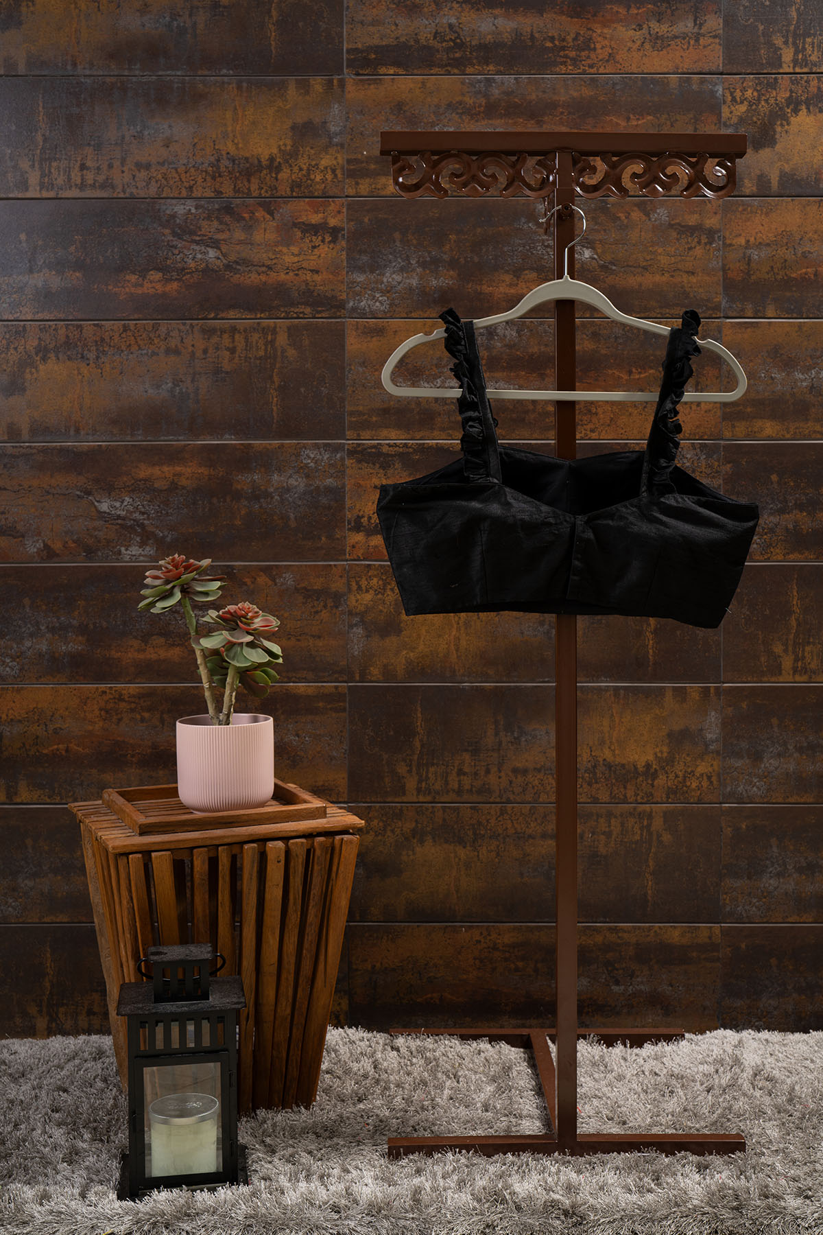 Black Saree in Georgette floral digital print and antique Lacework with stitched raw silk Blouse.